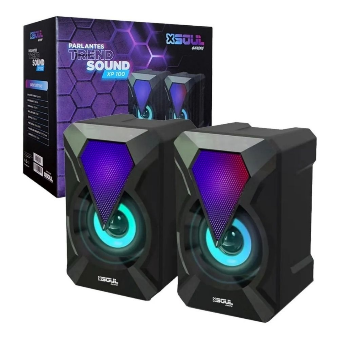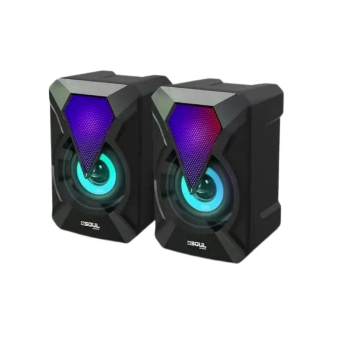 PARLANTE SOUL ESTILO GAMER PARA PC CONECTOR USB + AUXILIAR 3.5 5V-1AMP